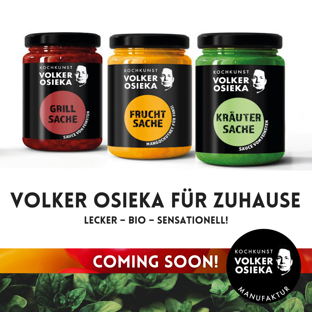 Volker Osieka lebt seine Marke. Er zeigt nicht nur in seinen regelmäßigen Online-Kochshows sein Gesicht. Er steht voll und ganz hinter dem was er tut. Er hat immer einen Plan. Und sollte der mal kurz nicht hinhauen, dann hilft Plan B. Er bewahrt die Ruhe, wenn es in der Küche heiß her geht.